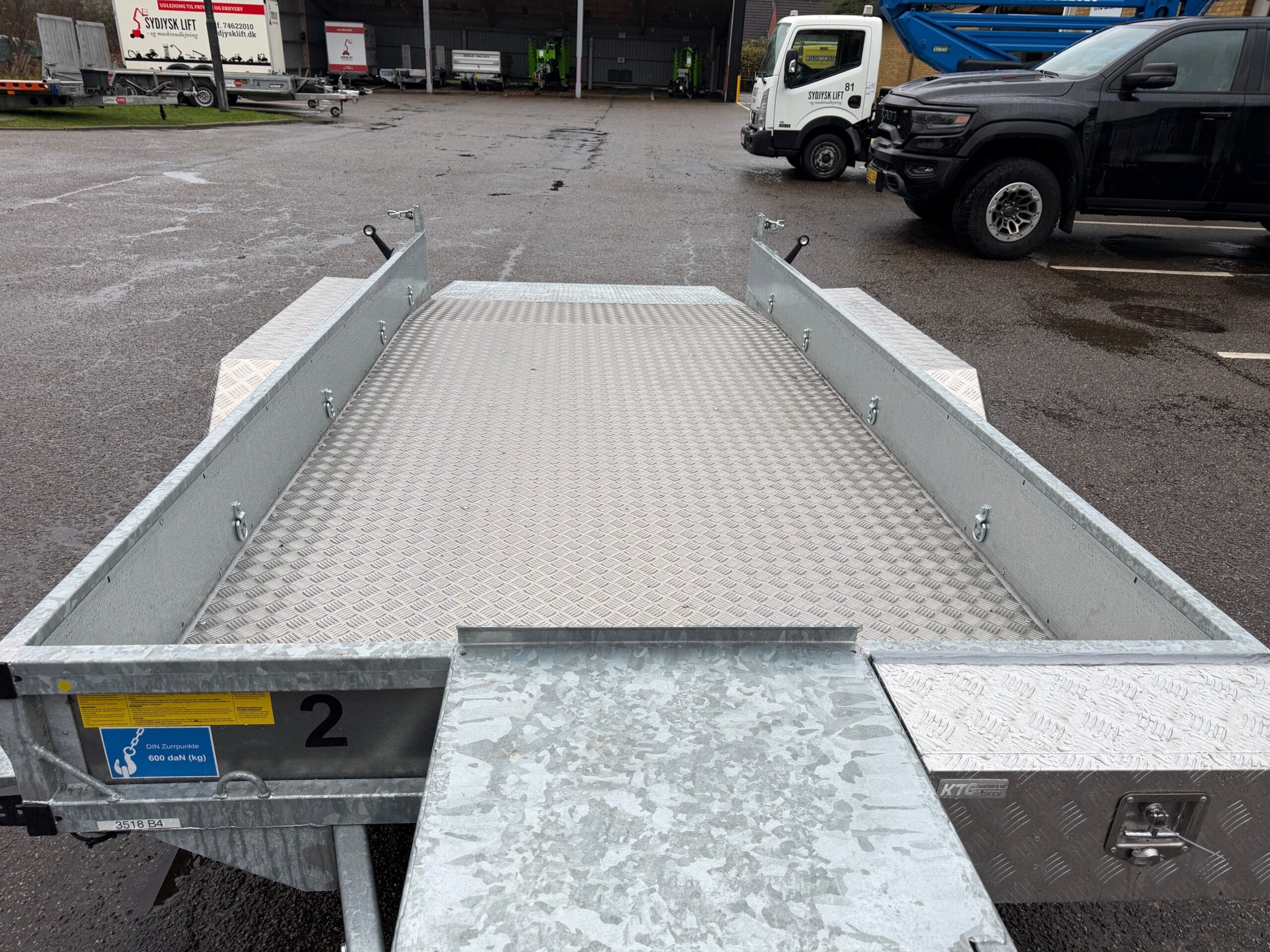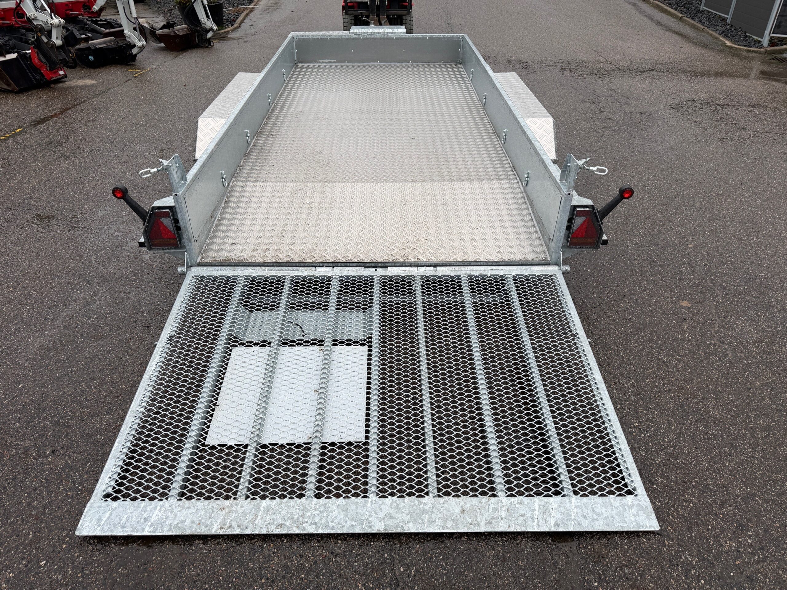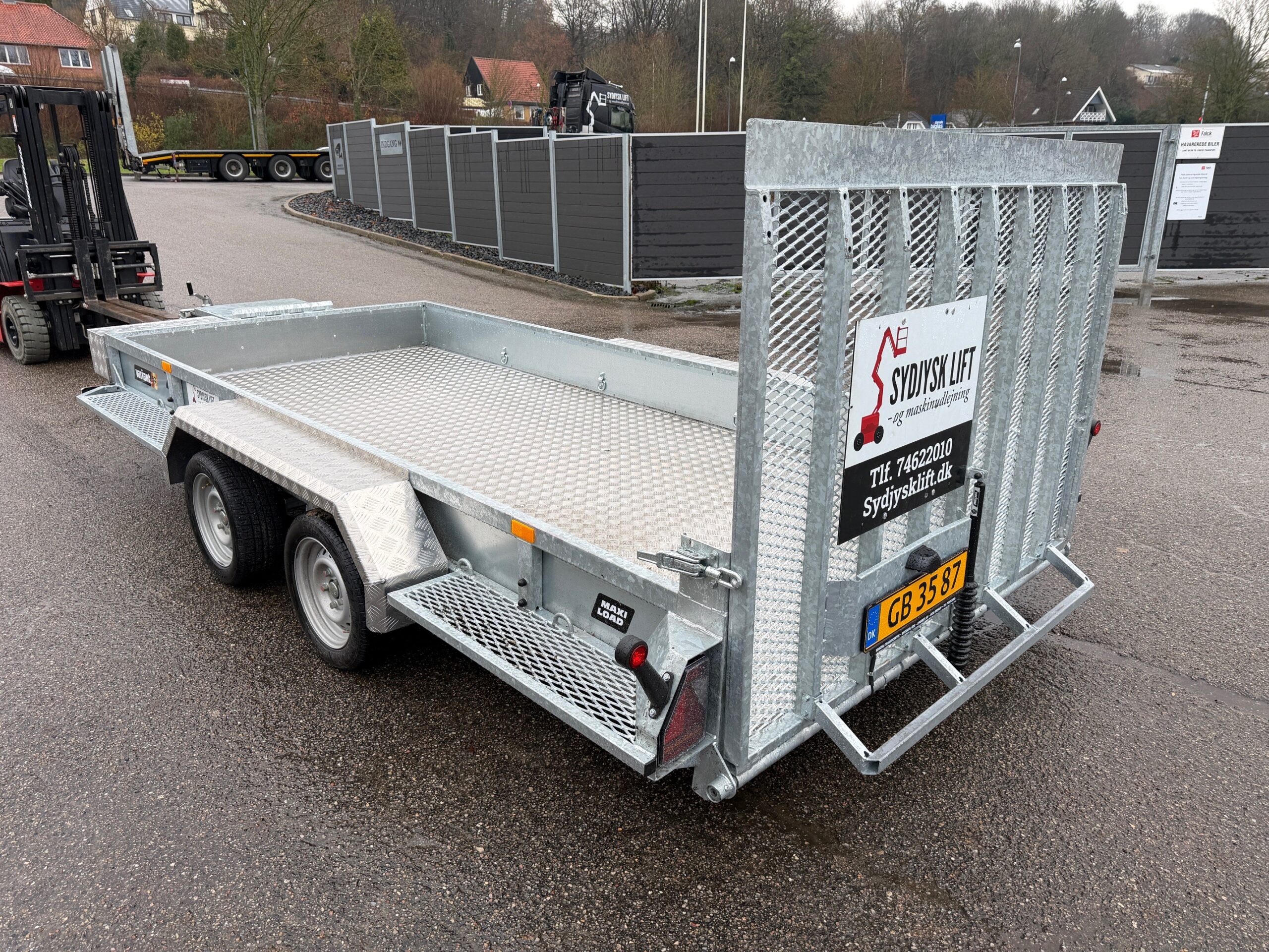 | Andet | Maskintrailer med bagrampe. Støtteben på bagrampe. Læssehøjde på 29 cm. |
