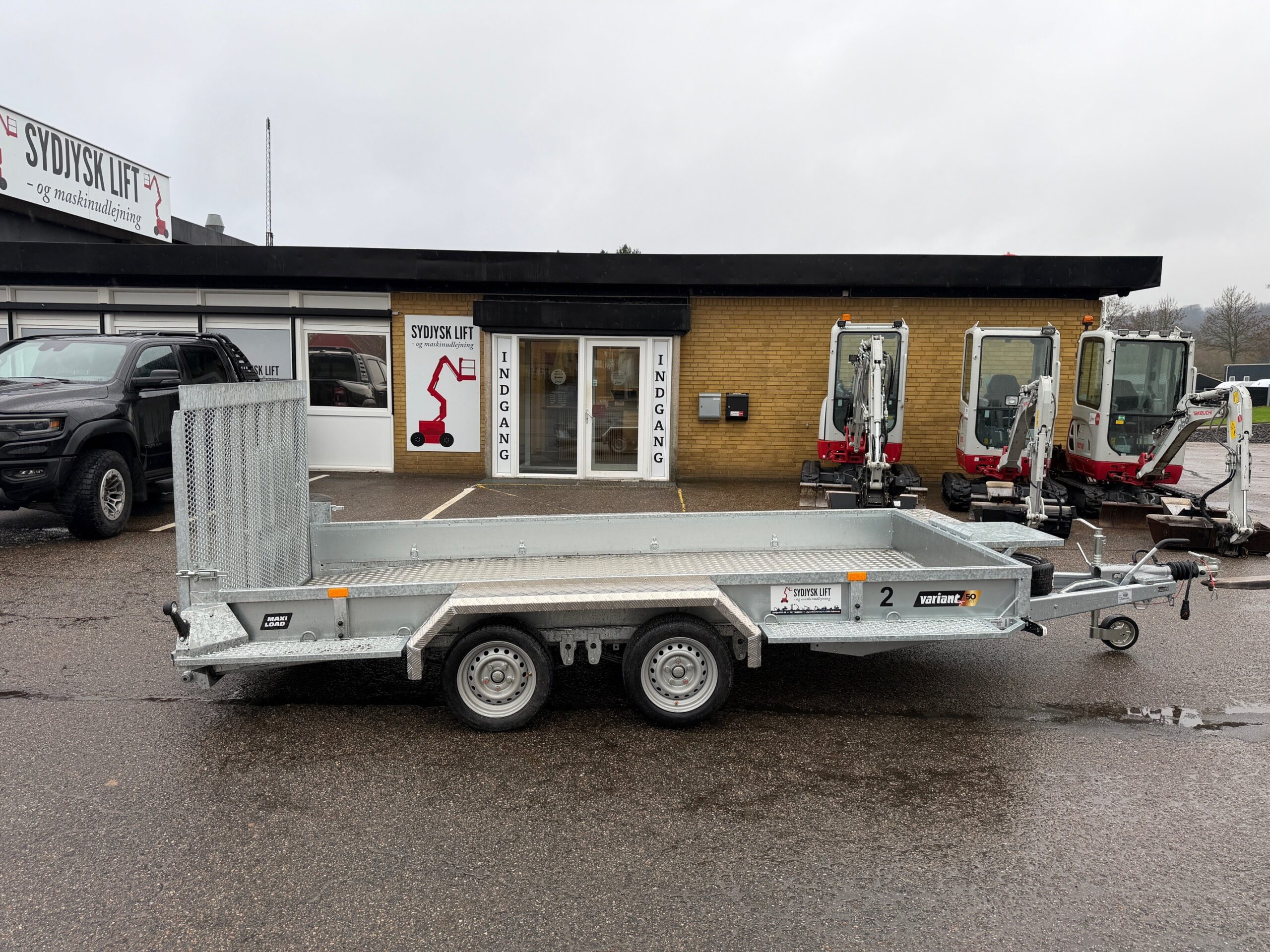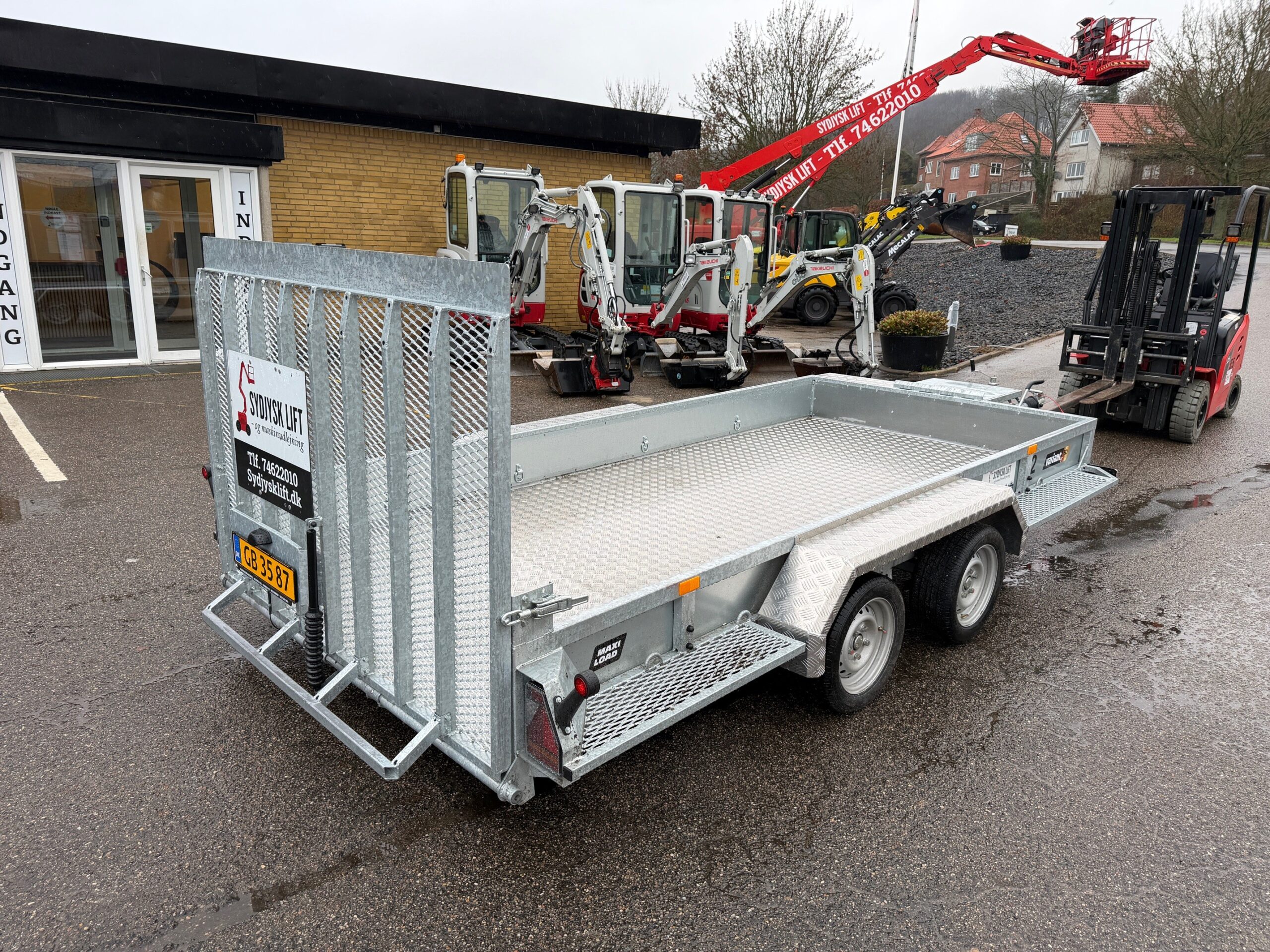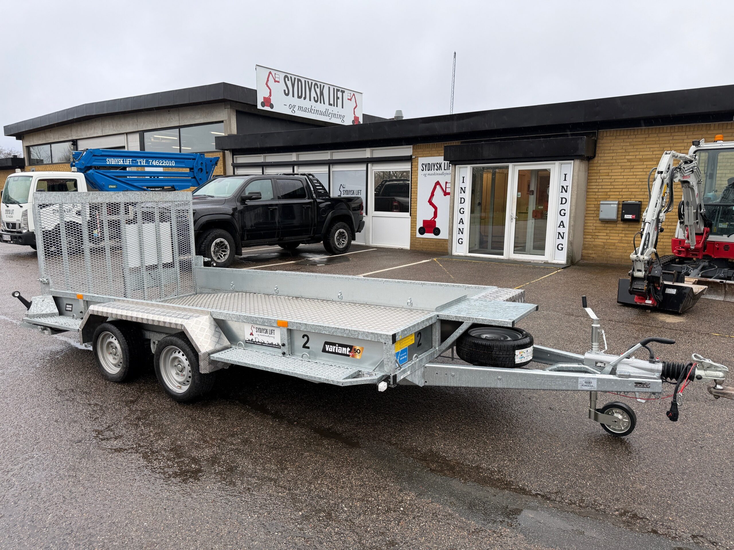 | Andet | Maskintrailer med bagrampe. Støtteben på bagrampe. Læssehøjde på 29 cm. |